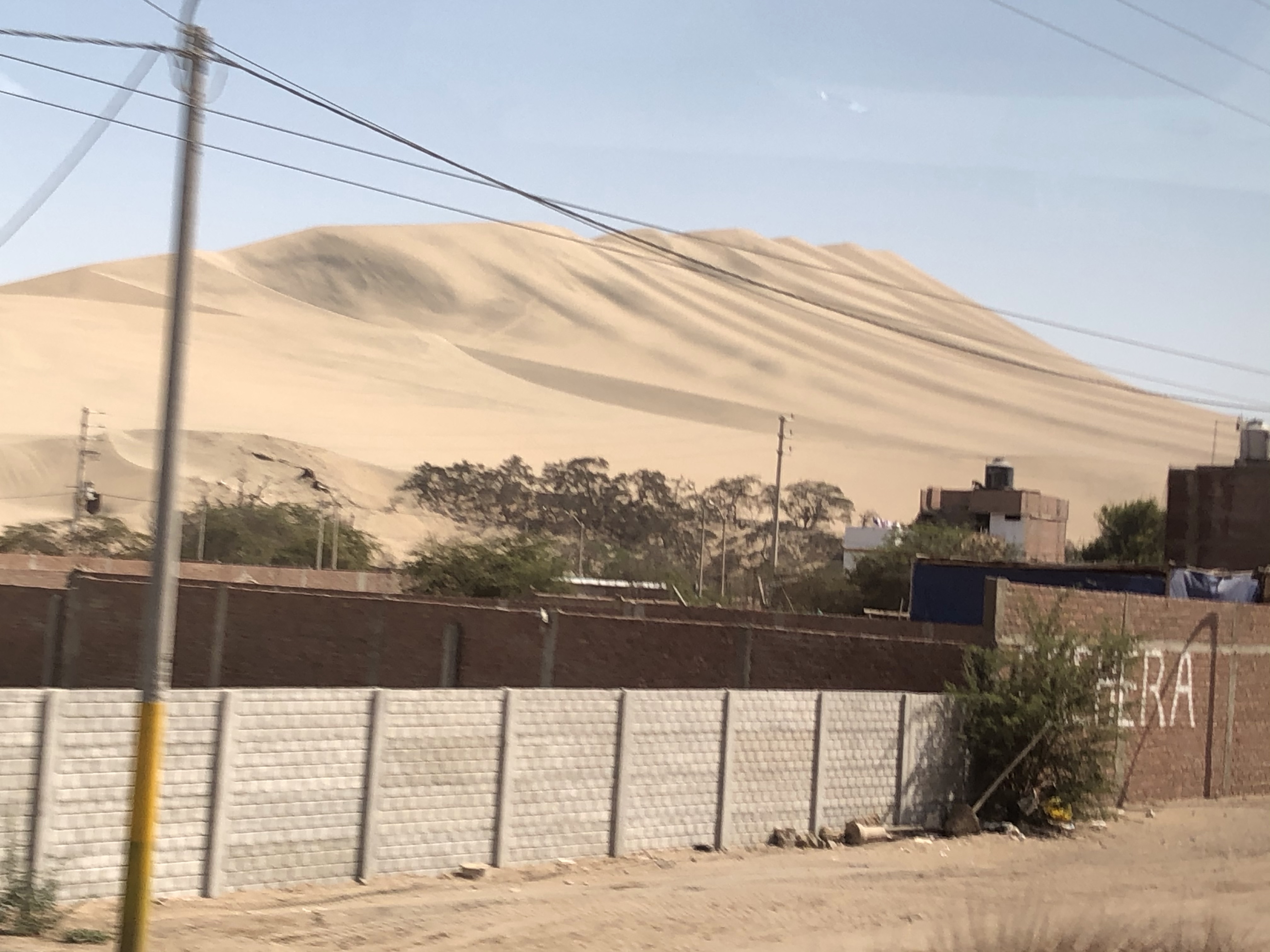 It was only another hour and a bit to Huacachina. The closer we got, the higher the dunes became and it became quite obvious we were driving into a desert.