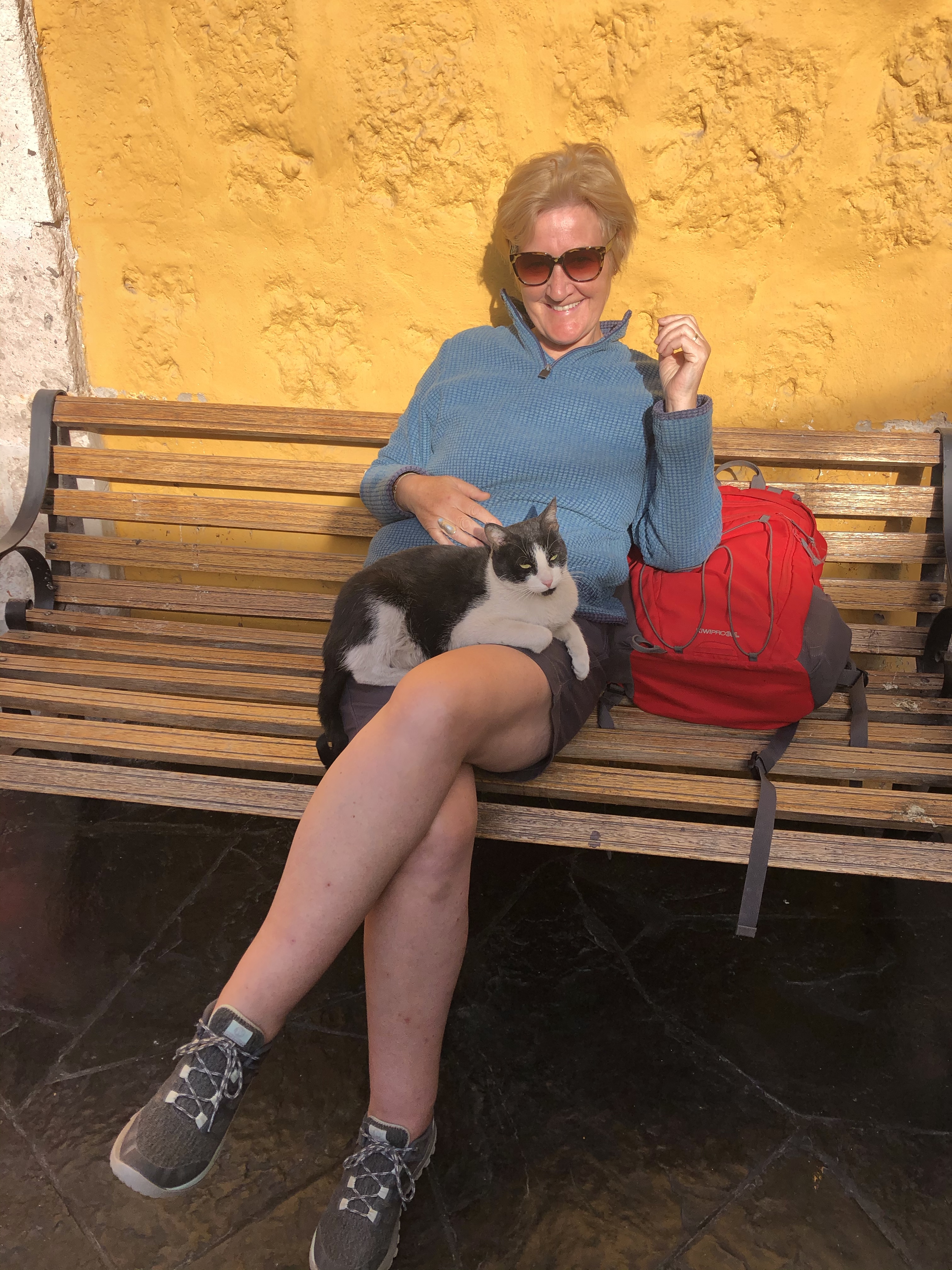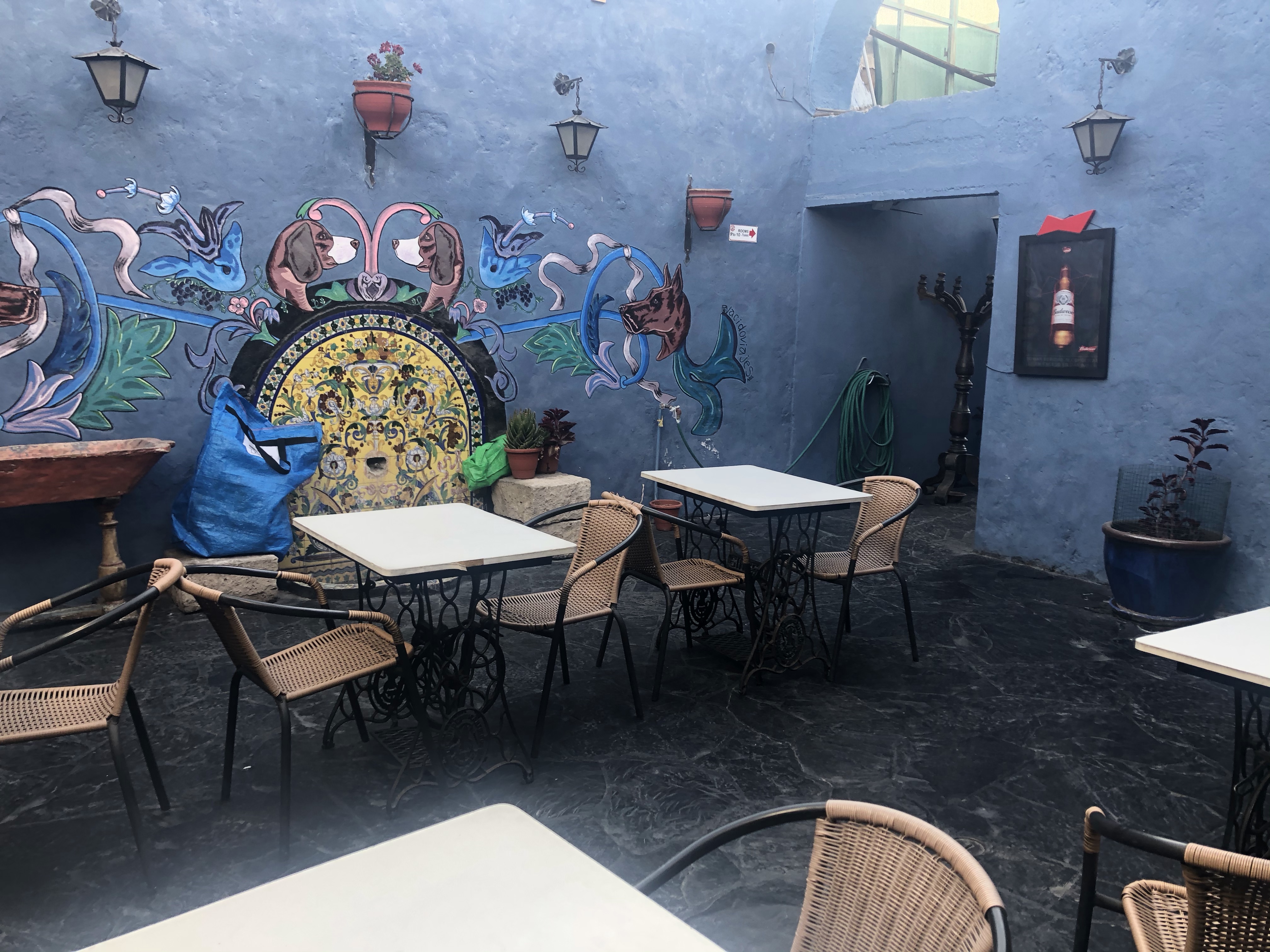 The staff very kindly allowed me to stay in the beautiful wee courtyard where I met the resident black and white cat. He jumped onto my lap an fell fast asleep, what a lovely introduction to Arequipa.
