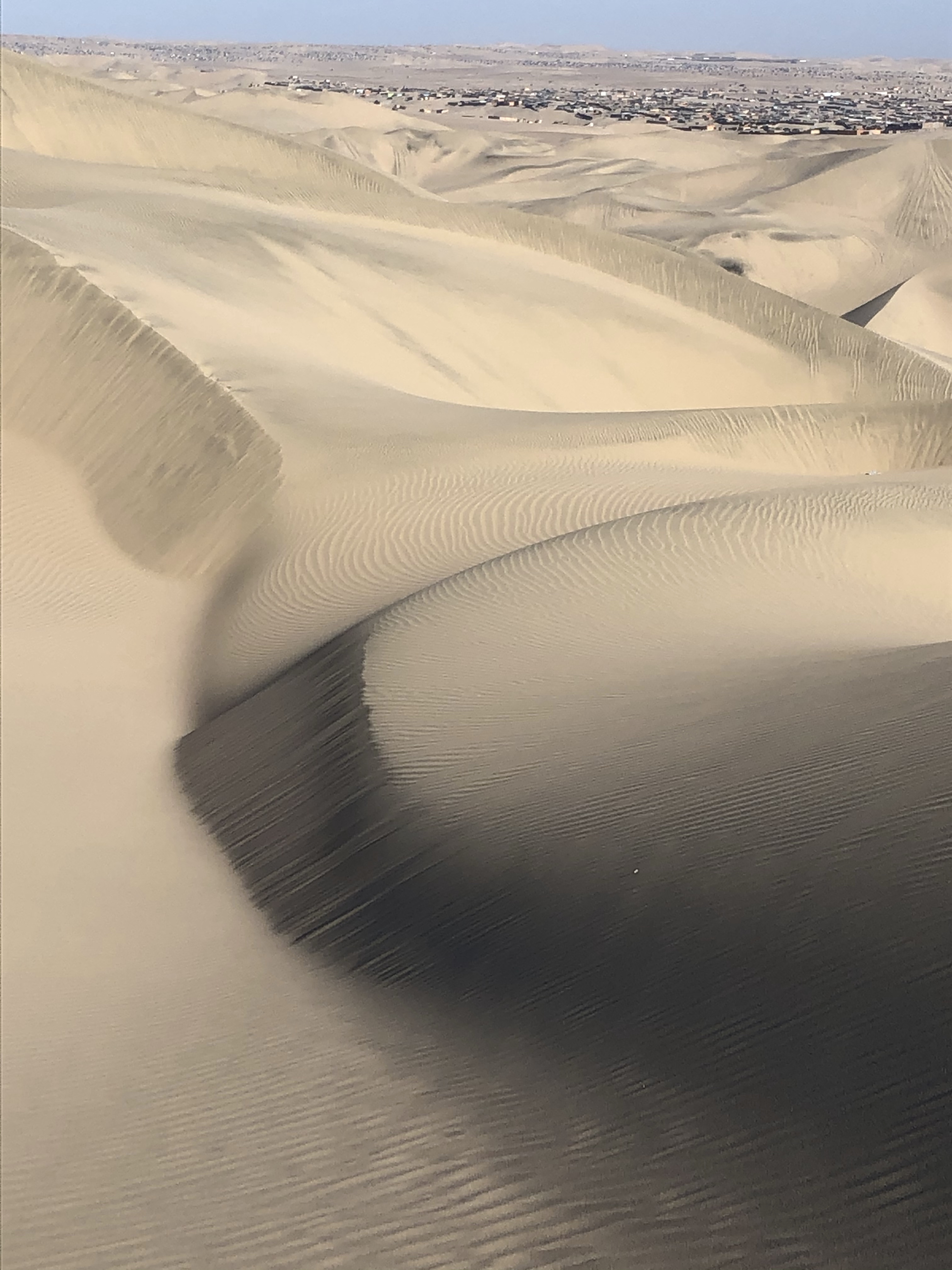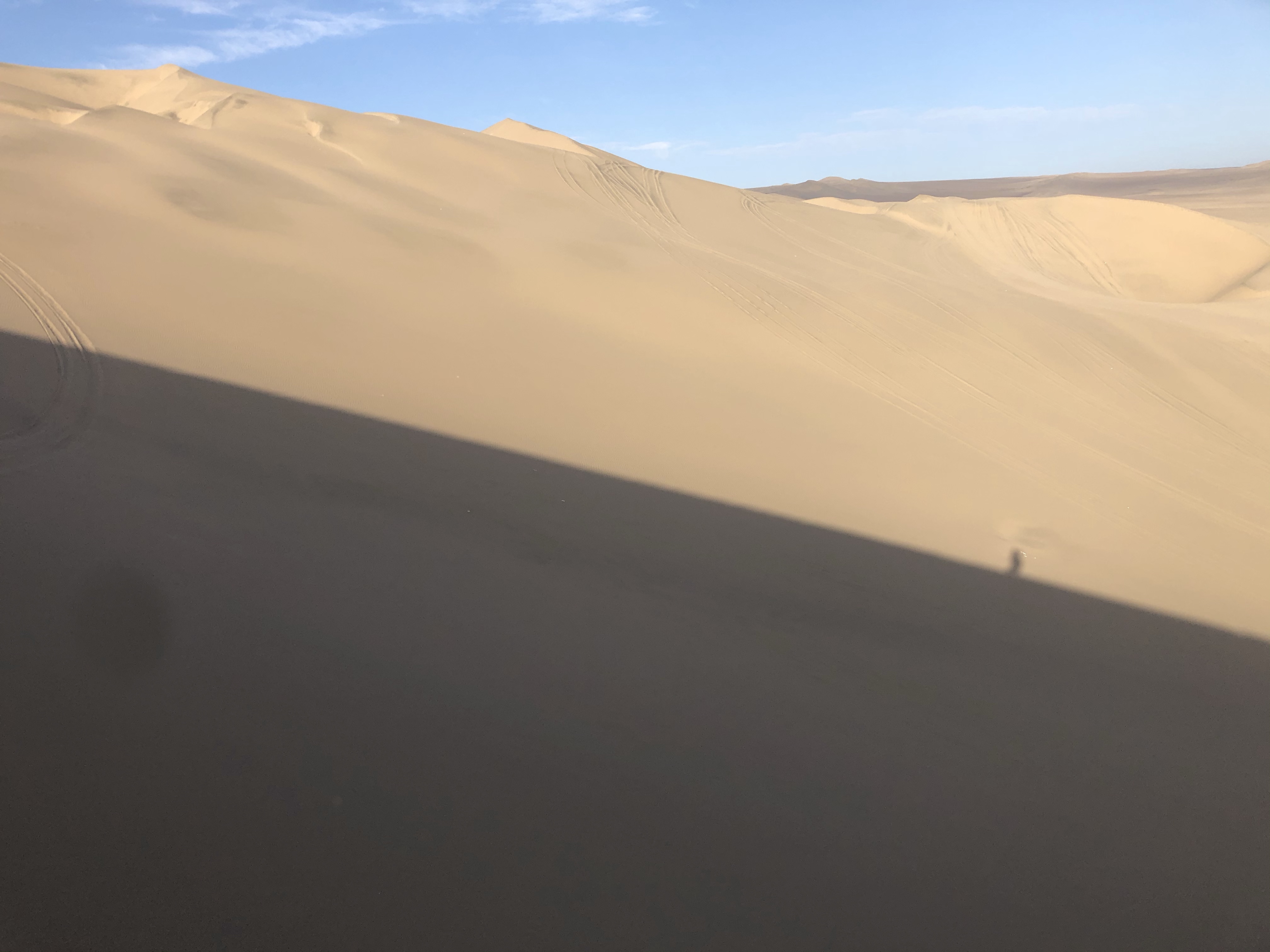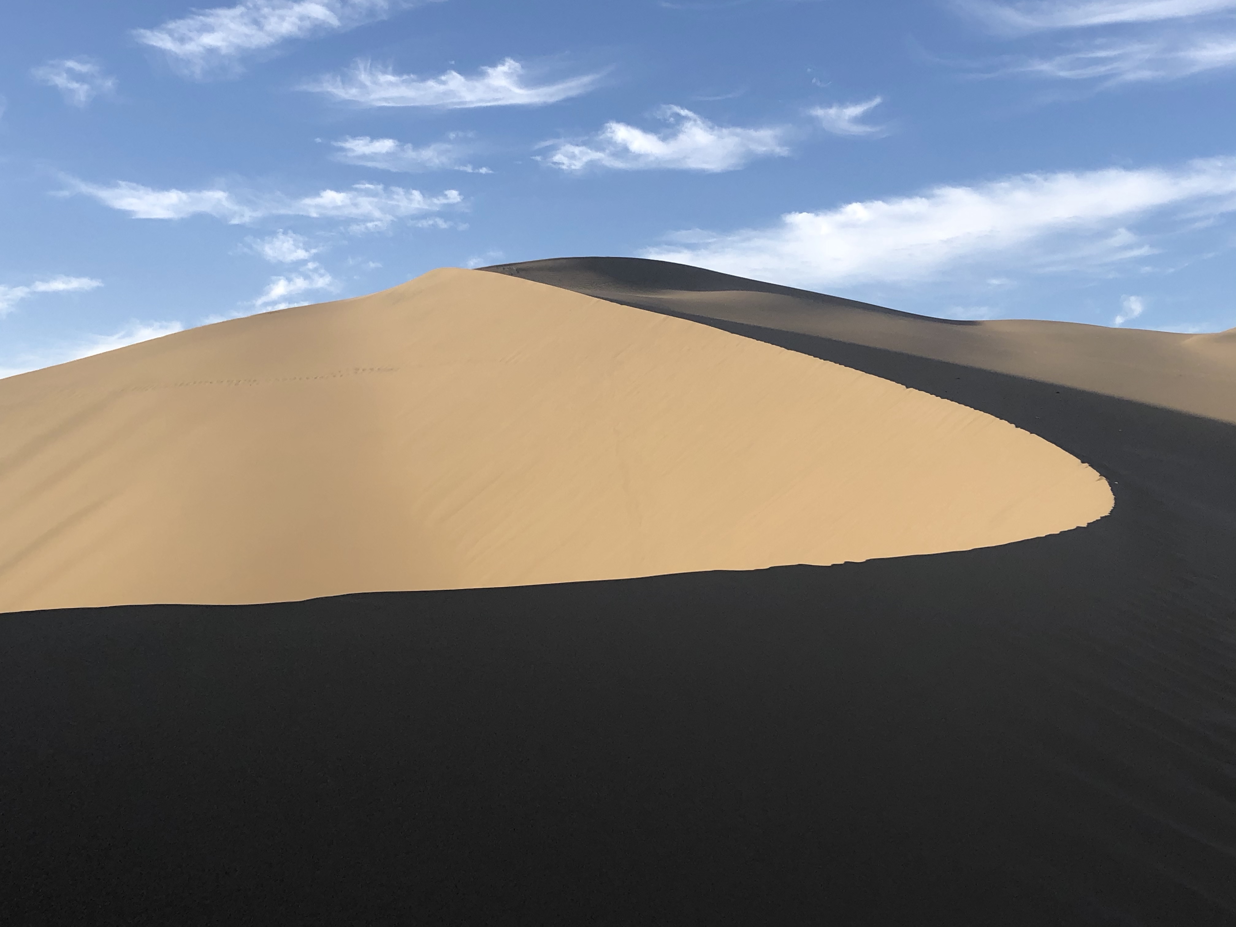 Off to the dunes. It was quiet, it was cool and it was serene. I had done my homework with my compass the night before and I knew exactly where the sun would rise and in what direction the shadows would cast onto the dunes. I knew it would be difficult – just because the sand was cool didn’t mean it would be any less soft – but it would be cooler. So, lathered head to toe in suncream, I was off on an expedition to conquer the towering dunes.