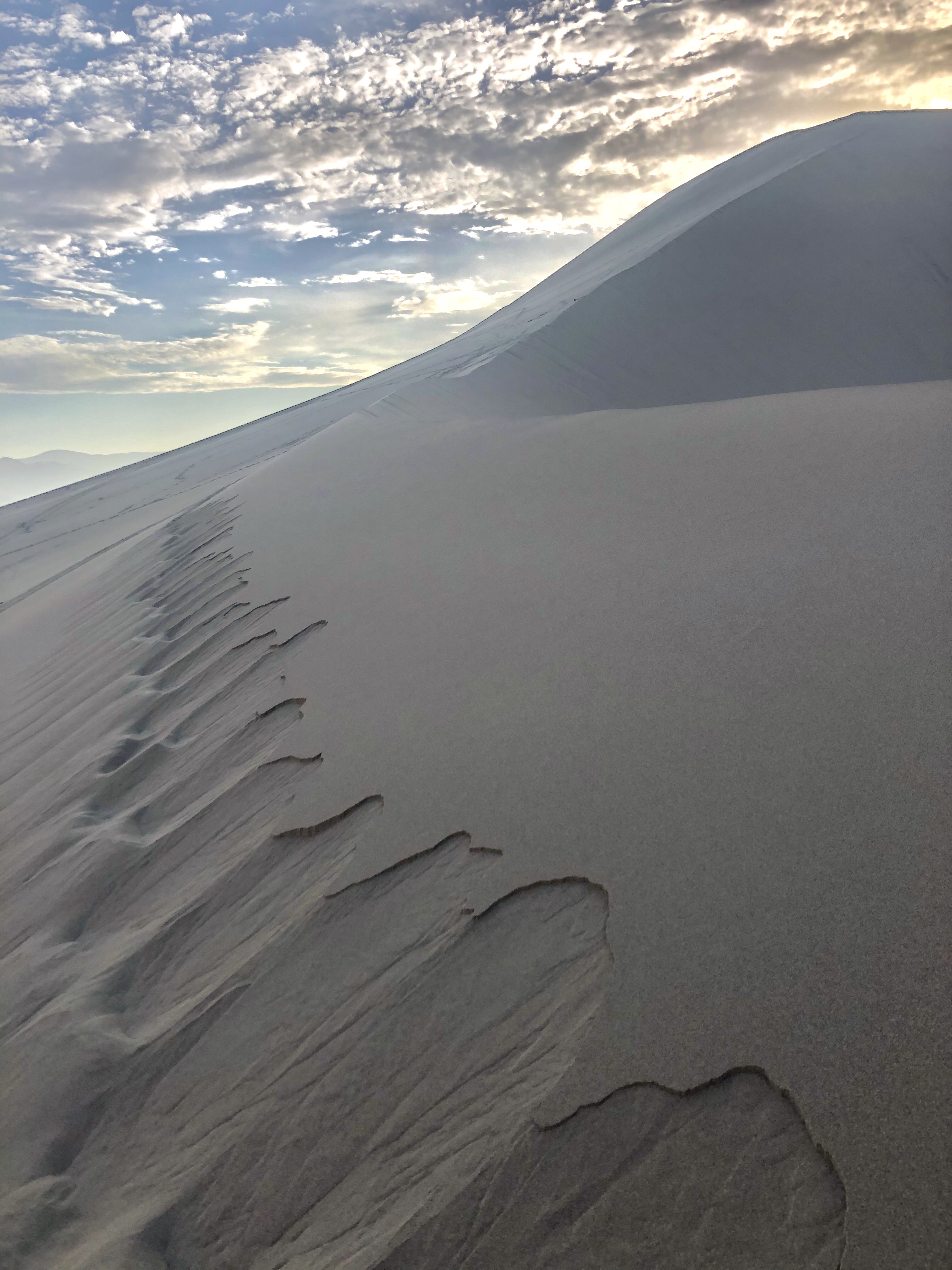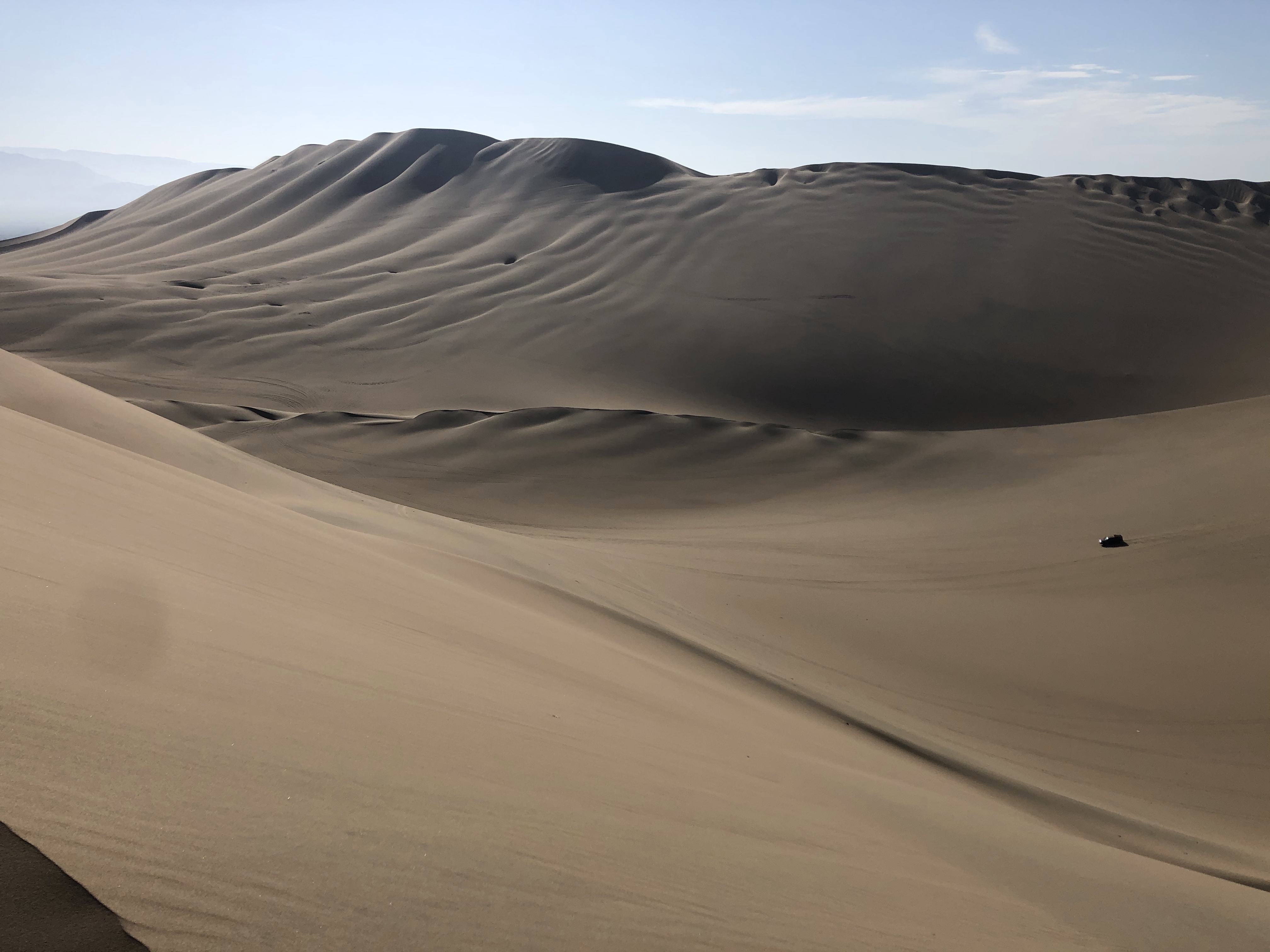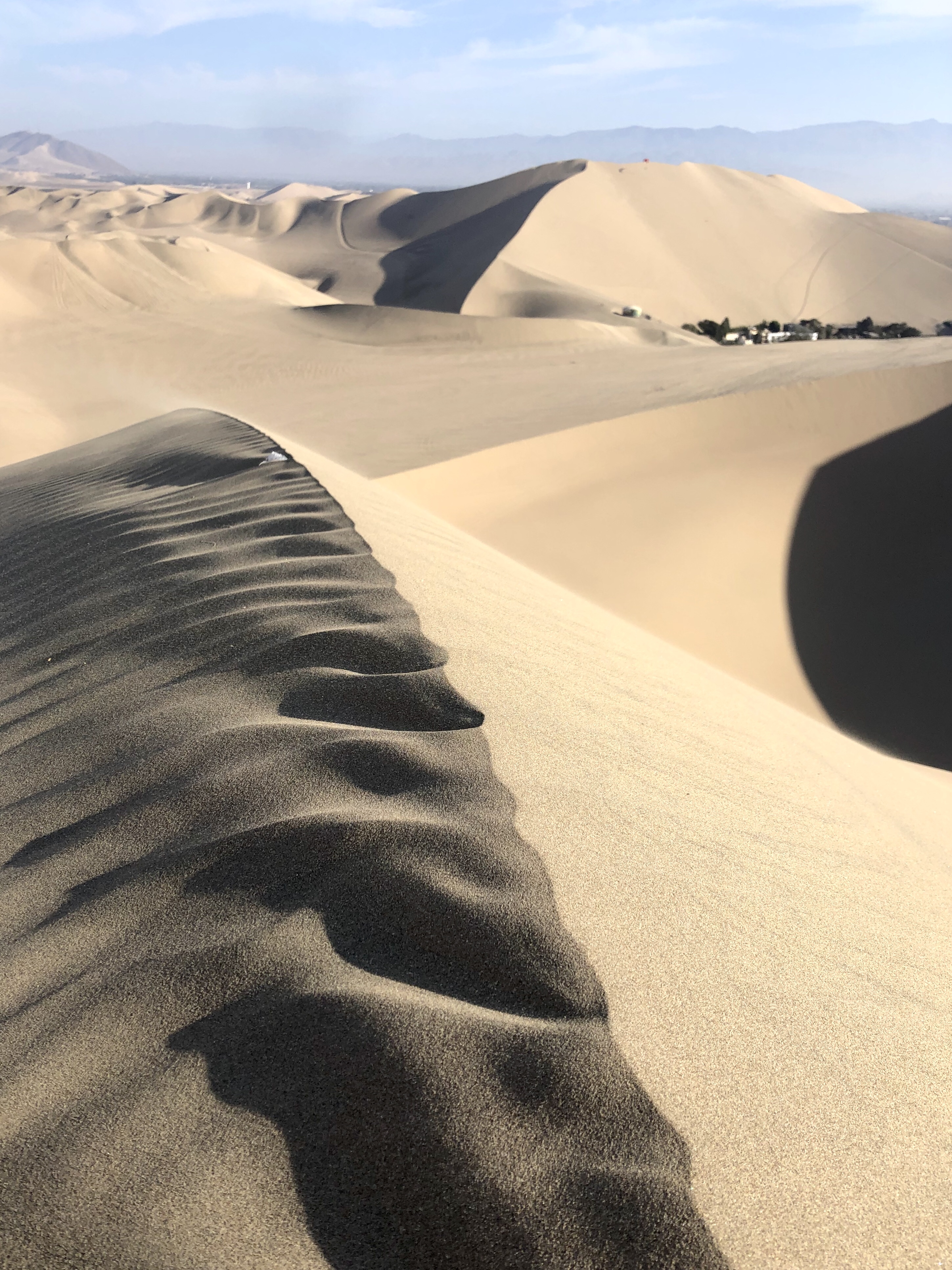 Off to the dunes. It was quiet, it was cool and it was serene. I had done my homework with my compass the night before and I knew exactly where the sun would rise and in what direction the shadows would cast onto the dunes. I knew it would be difficult – just because the sand was cool didn’t mean it would be any less soft – but it would be cooler. So, lathered head to toe in suncream, I was off on an expedition to conquer the towering dunes.
