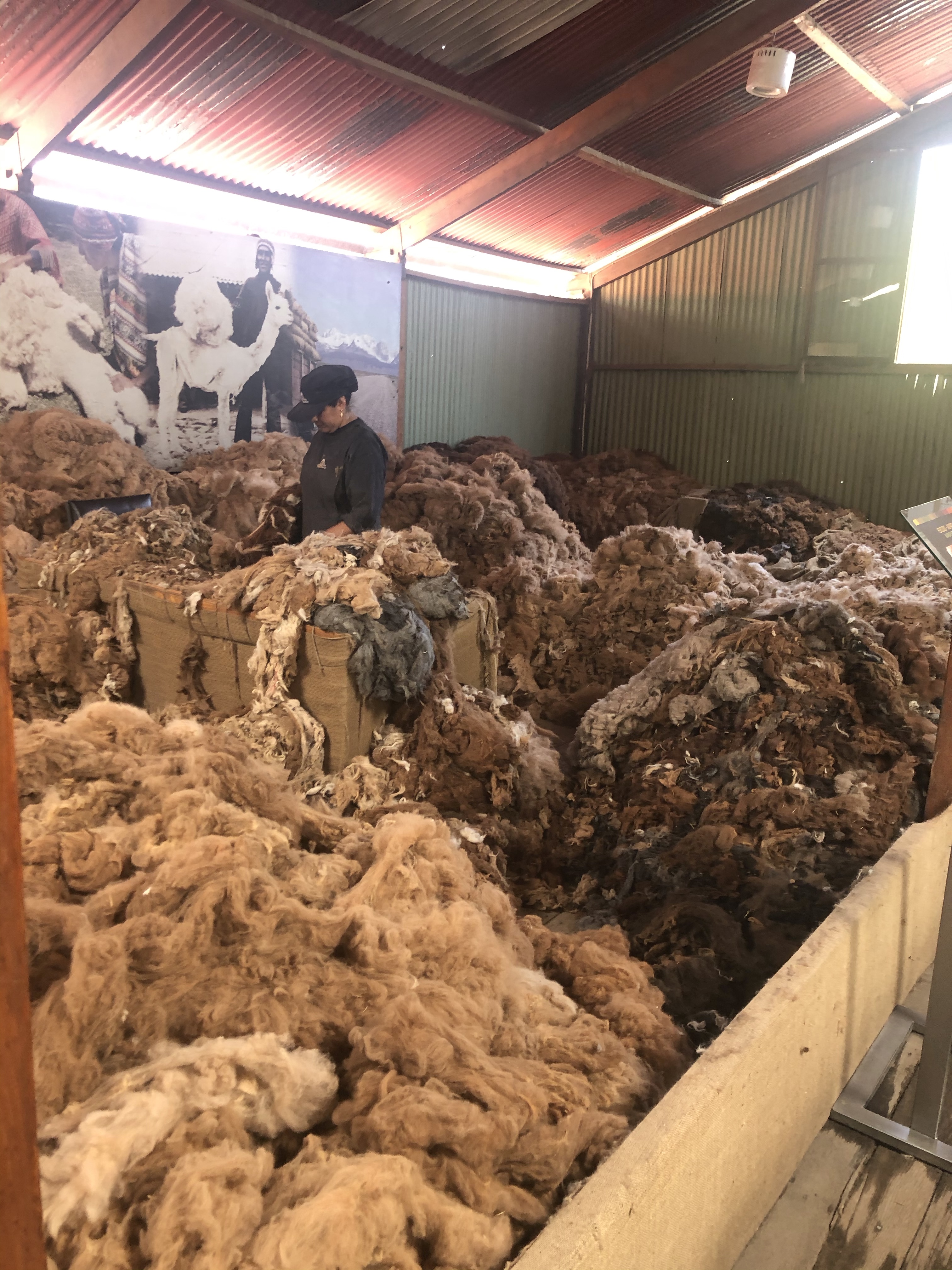 Then we strolled up the paved street to visit the Alpaca weaving and textile outlet.