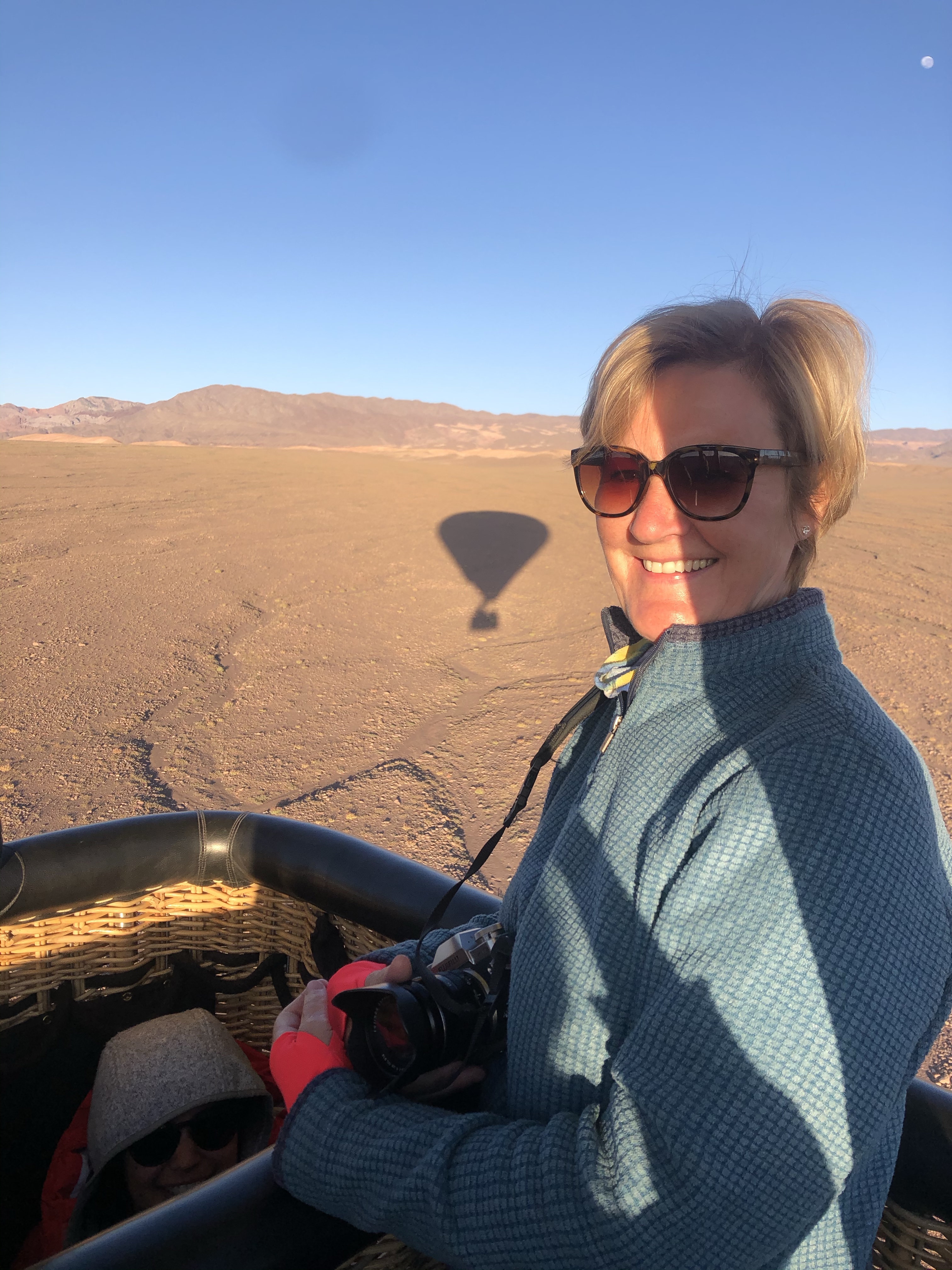 as the balloon floated and glided gently above the ground drifting with an intentional direction for what seemed like 20 mins but was actually over an hour. There were no animals to be seen in this arid desert but that certainly didn’t distract from the mesmerising experience, I was happy just to float! I asked the pilot so many questions – my daughter always gives me into trouble for asking so many questions as she says I know the answer and just like to talk.