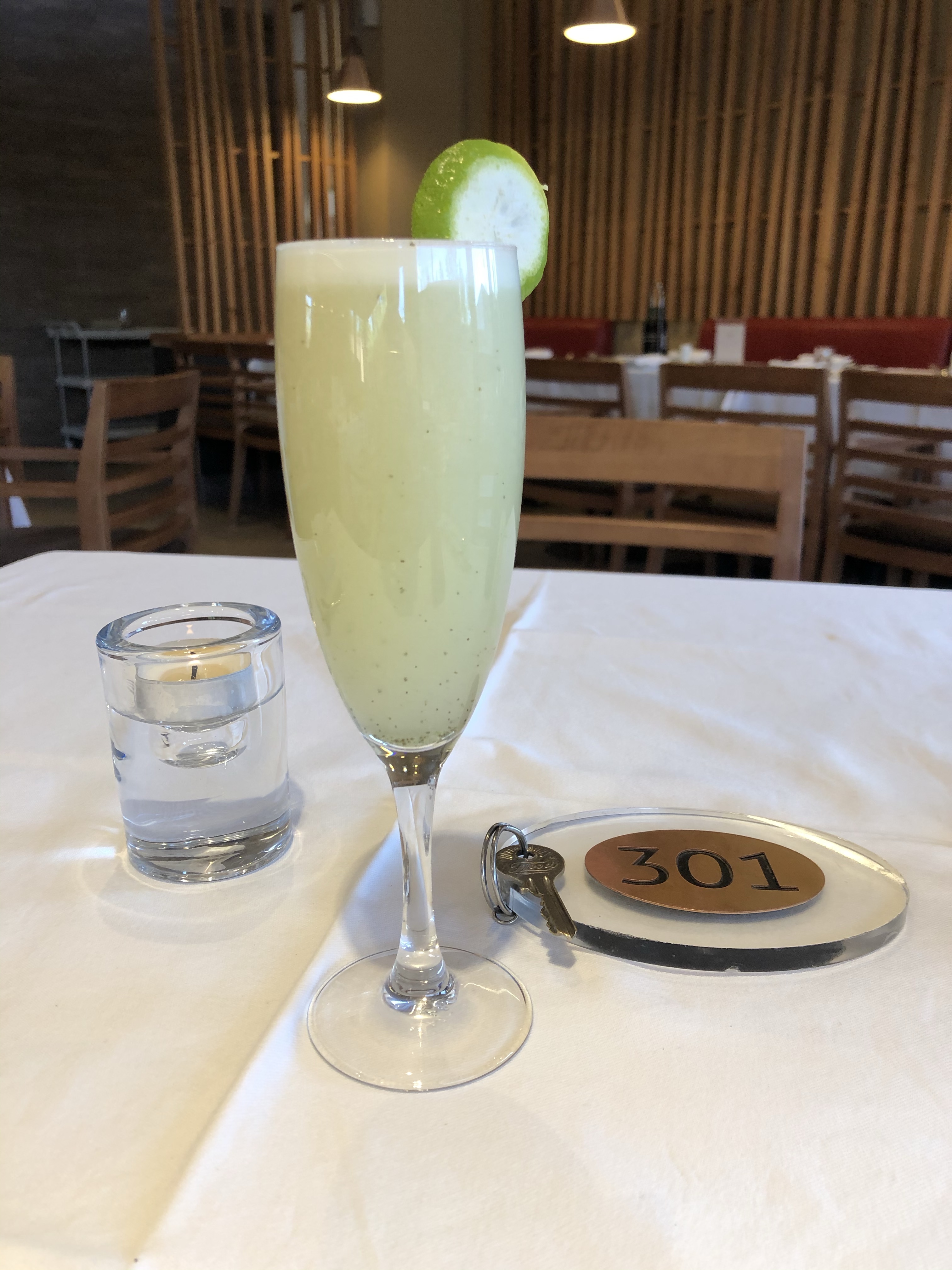 Gathering everything up, I returned to my room to get ready for an early dinner. I had abstained from having lunch and was now ready to eat a scabby horse! I still had my complimentary drinks voucher and intended to use it – my last night 😥