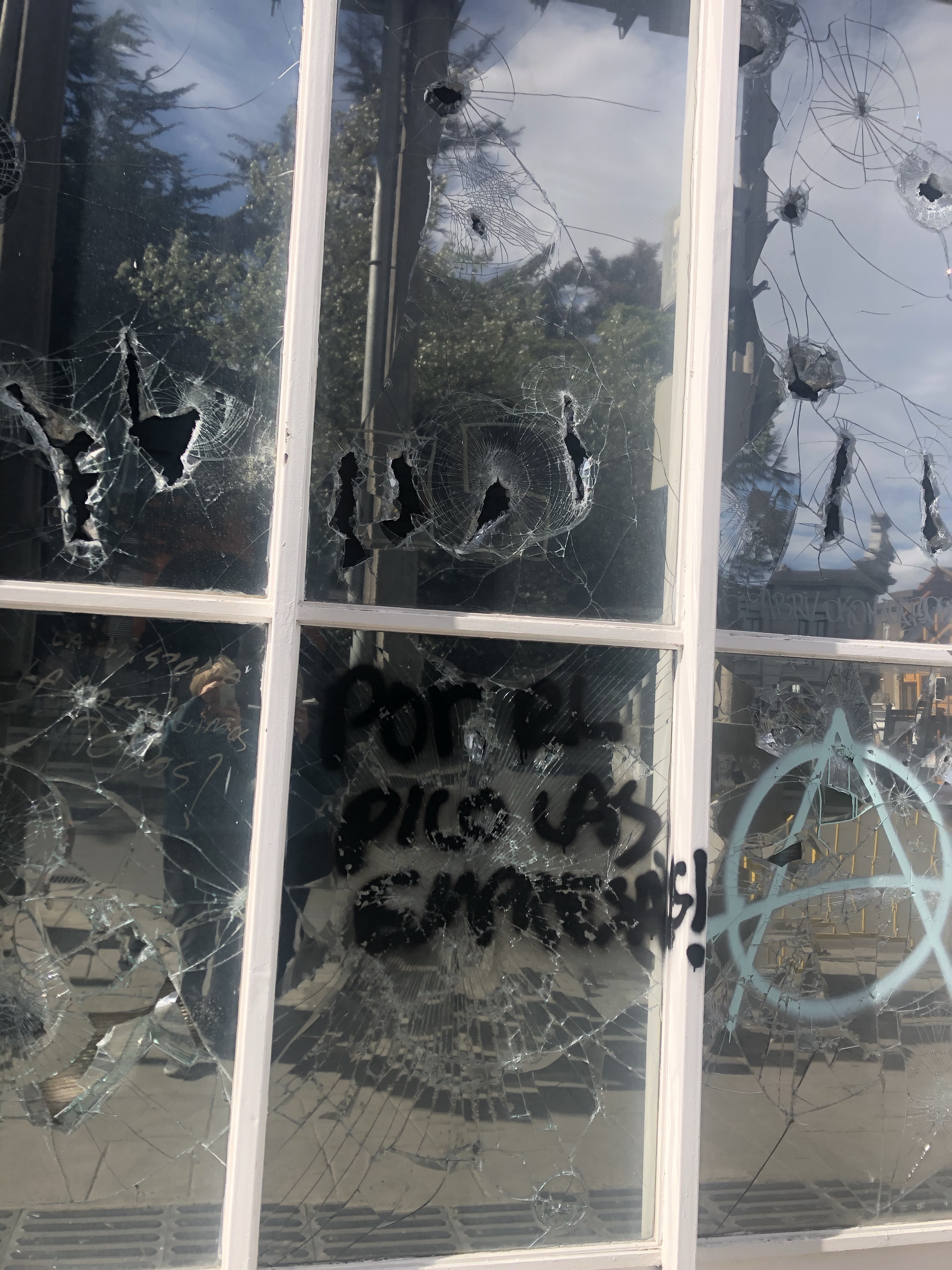 Went back to the outdoor shop but the jacket was in men’s sizes only. On the way there I had a good look at the damage the demonstrators made and it’s just pitiful.