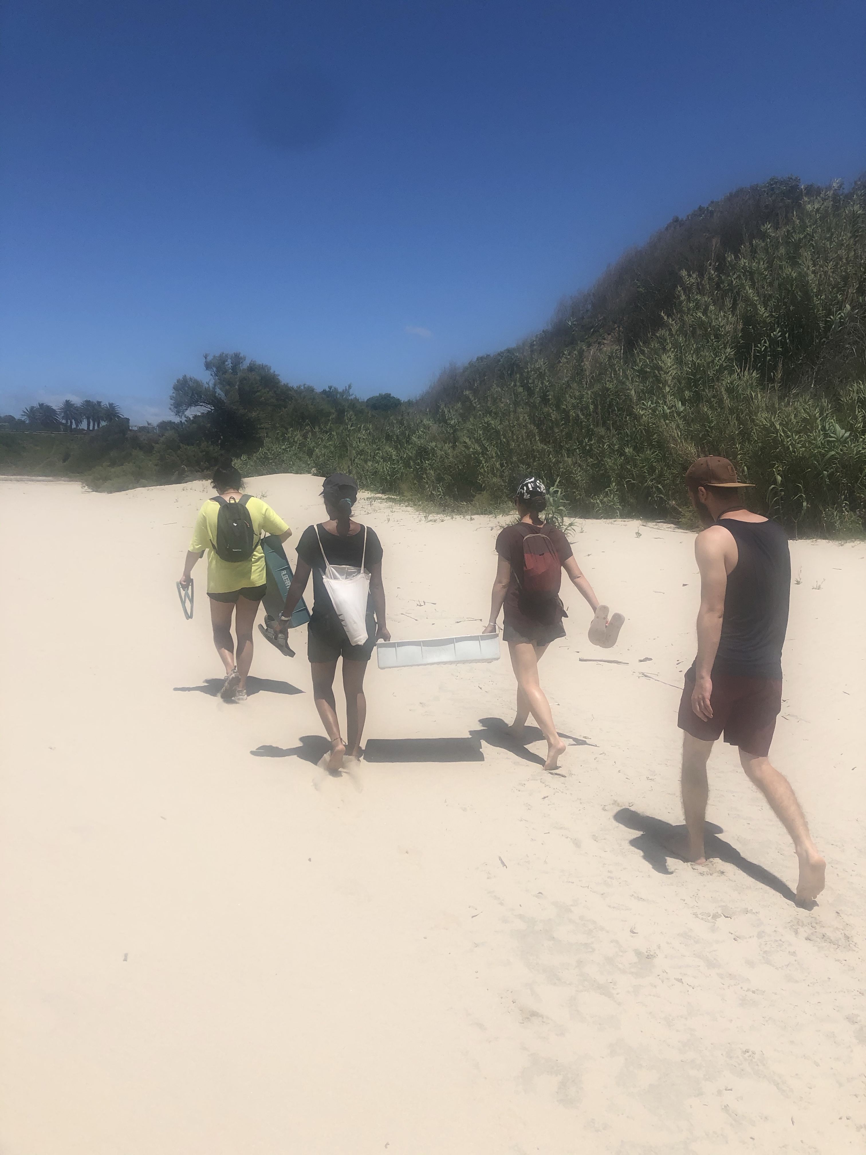 The were weighed, a variety of measurements taken and tags placed on each front flipper. They were then placed into plastic trays and we proceeded to head for the beach and walk to the release sight was 3km away.