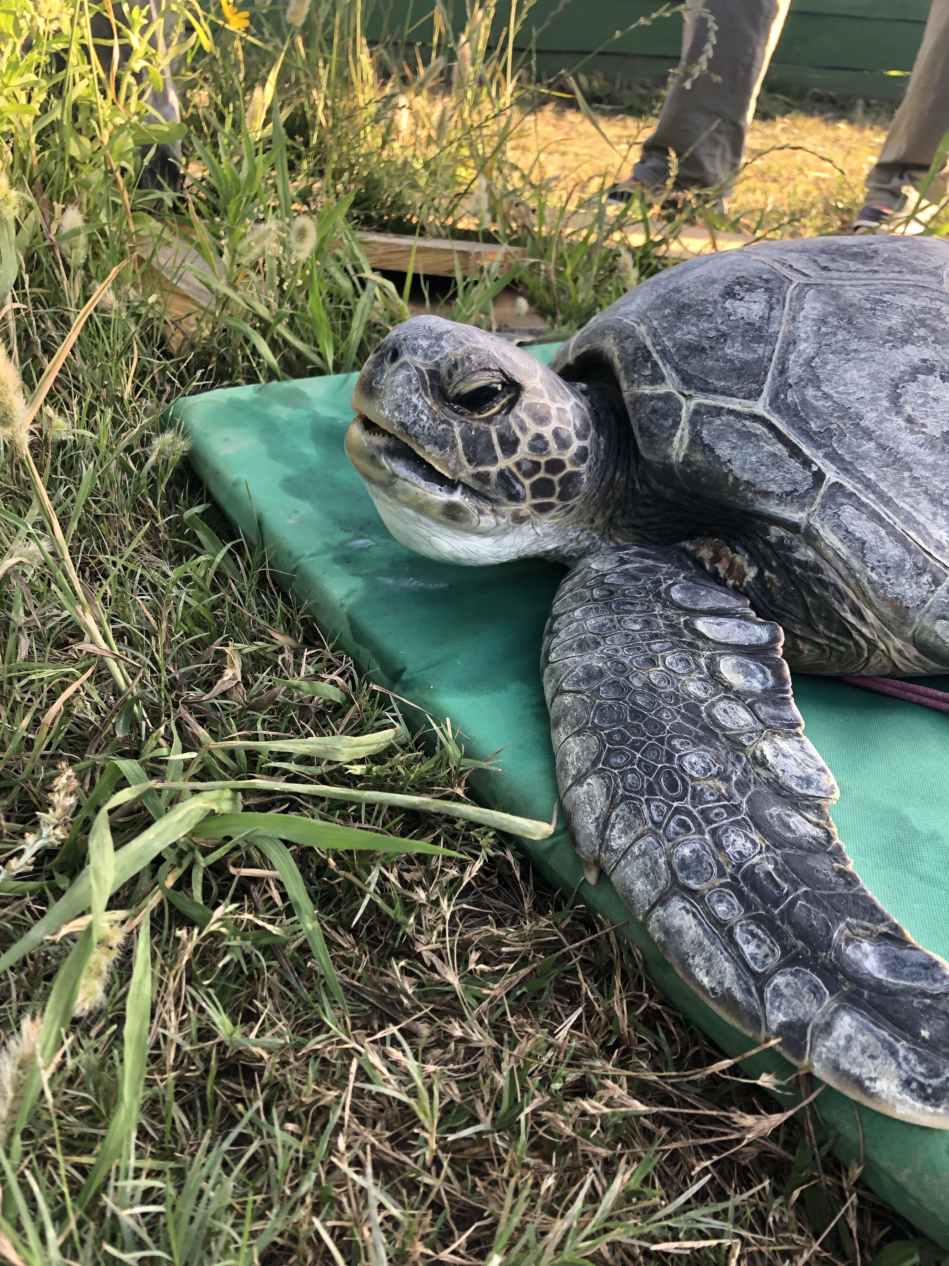 Unfortunately the second small turtle didn’t do so well. It struggled to coordinate its breathing and diving and it started to panic so it was decided to bring it back onto the shore, wait a while and retry.