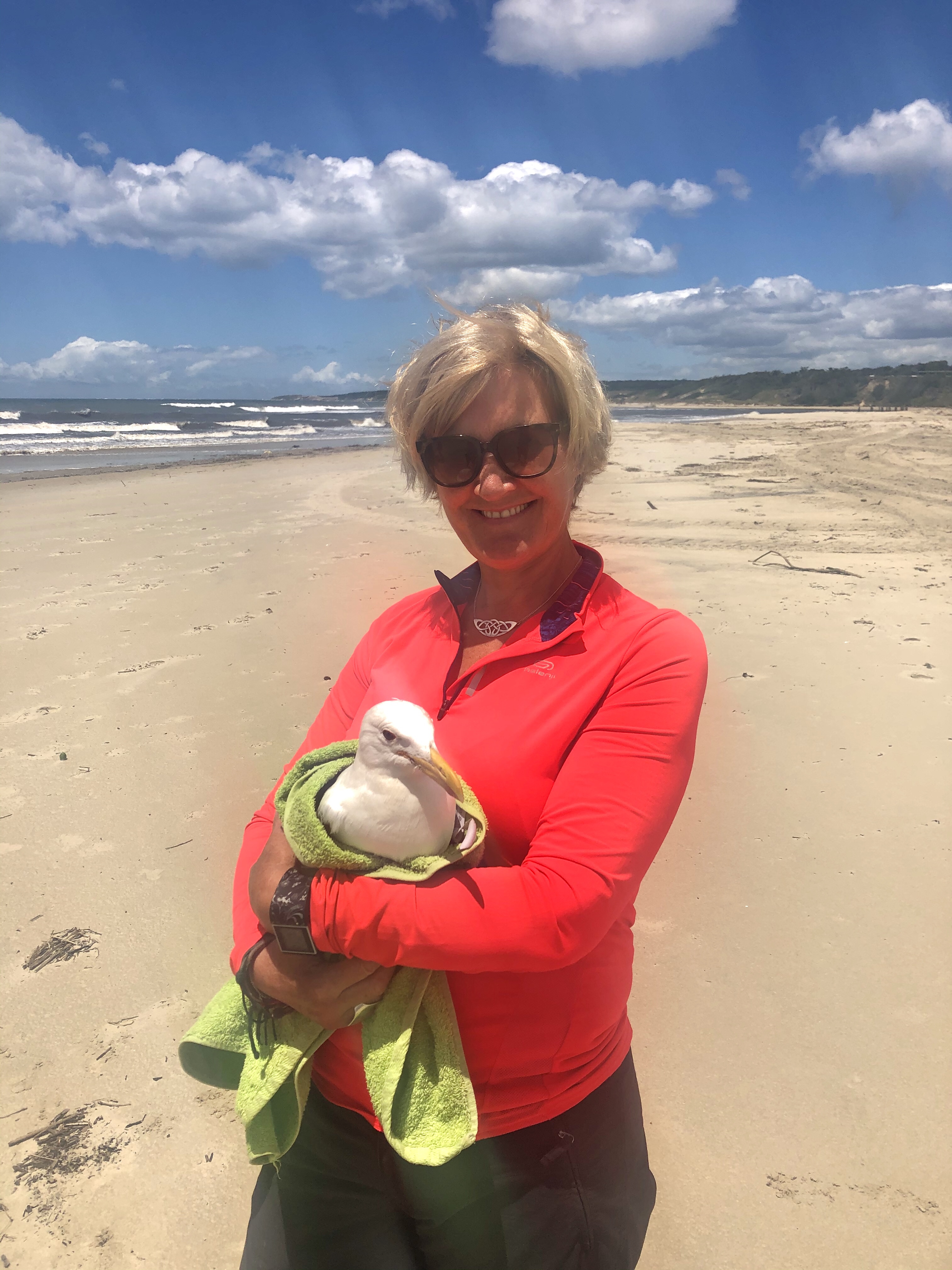 He got so excited when the sound of the waves crashing on the shore reached his ears and he began wrestling beneath the towel. Nervously, I opened the towel and placed him on the sand. I knew he might take off and run away from me as far as he possibly could and I may never catch him again. But he still wasn’t strong enough. His little legs ran along the sand towards the open sea and he flapped his wings desperately trying for lift off but they just didn’t have the strength and wouldn’t support his body. The muscles in his wings were still weak and he needed to be taken to the beach for a few more days to flex and build them up. Thankfully he was so tired and it was easy to catch up with him to scoop him back up. I wrapped him in the towel and took him back to the centre