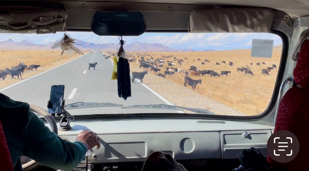 The landscape constantly changed and was full of livestock; yaks, camels, horses, sheep, cows and hundred of goats that crisscrossed the road wherever or whenever they chose. There was a huge presence of eagles and vultures soaring high up in the air.