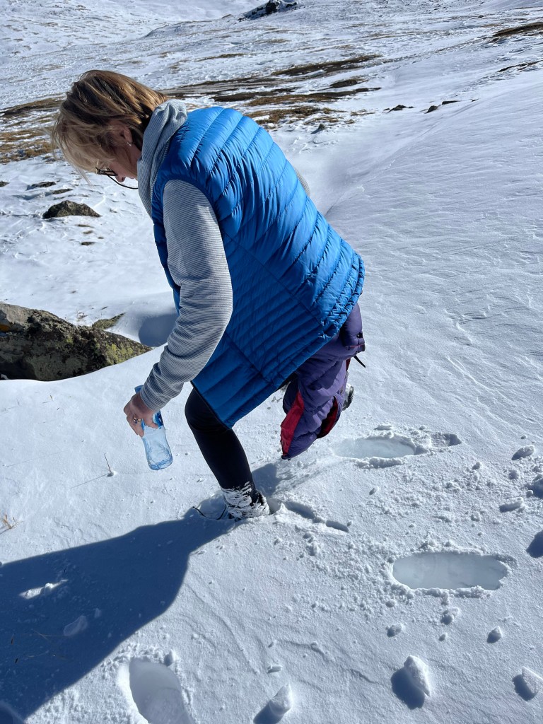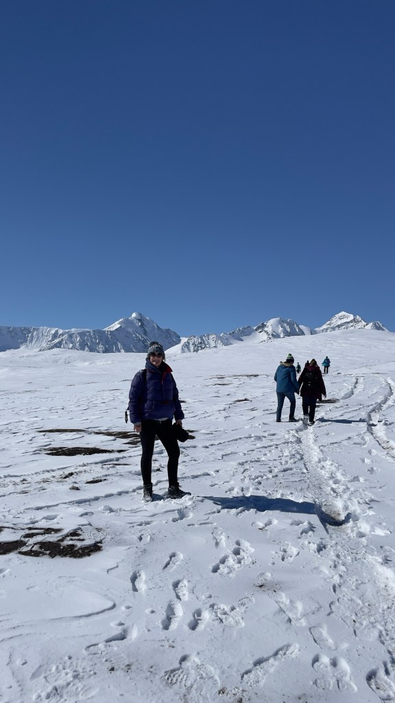 Looking up to where we were heading certainly meant an arduous task. We were just under 3,000 meters and walking in this deep snow quickly depleted my energy. Iām not ashamed to say I was struggling and trailing behind although I thought I would have coped better. Iām sure it was the altitude as Iāve felt this before at these heights.