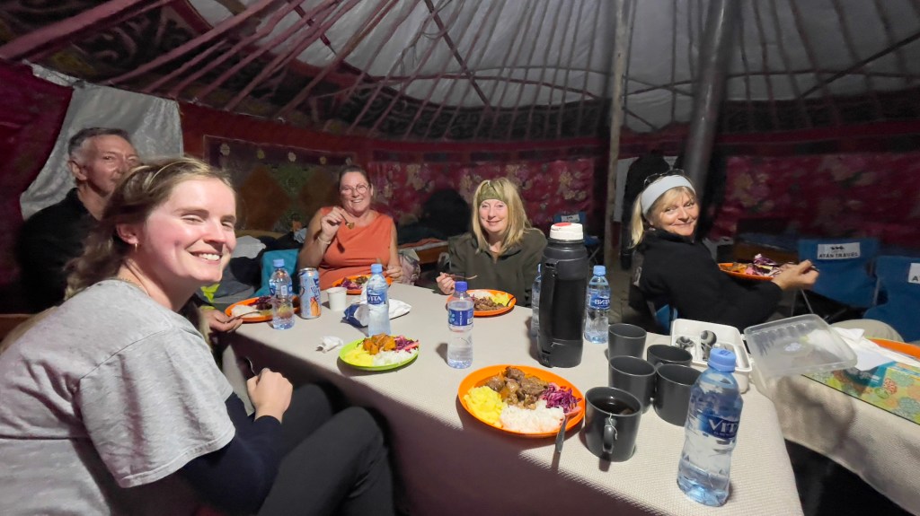 We were divided into two Gers for sleeping arrangements but all 15 of us gathered into one Ger for dinner. It was the sensible thing to do and it gave us time to catch up on the days events.