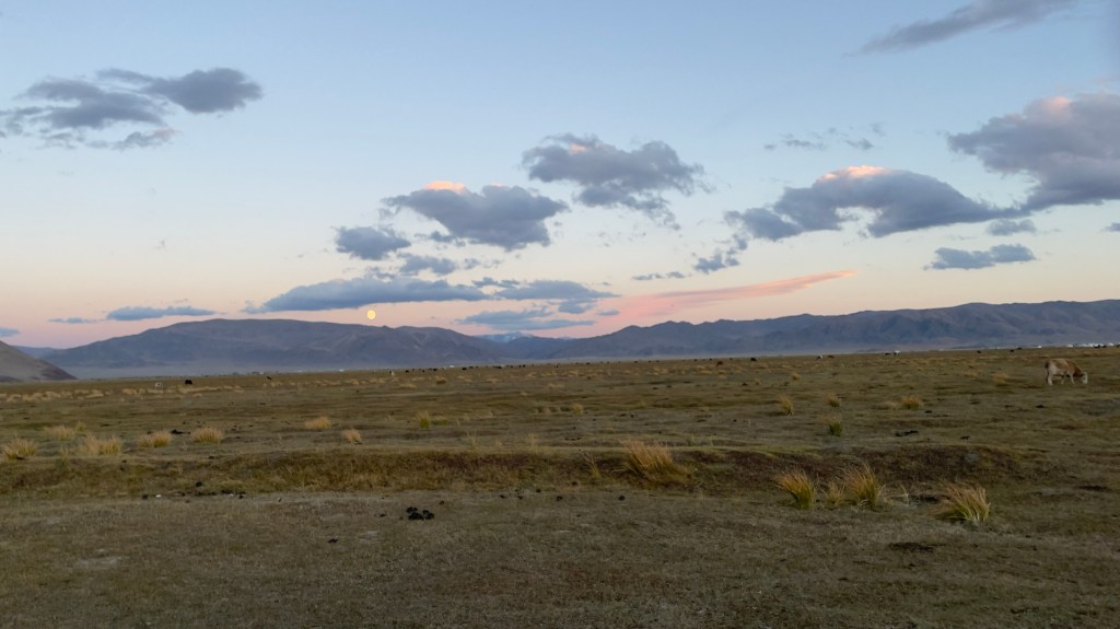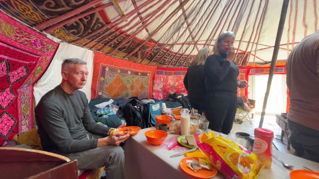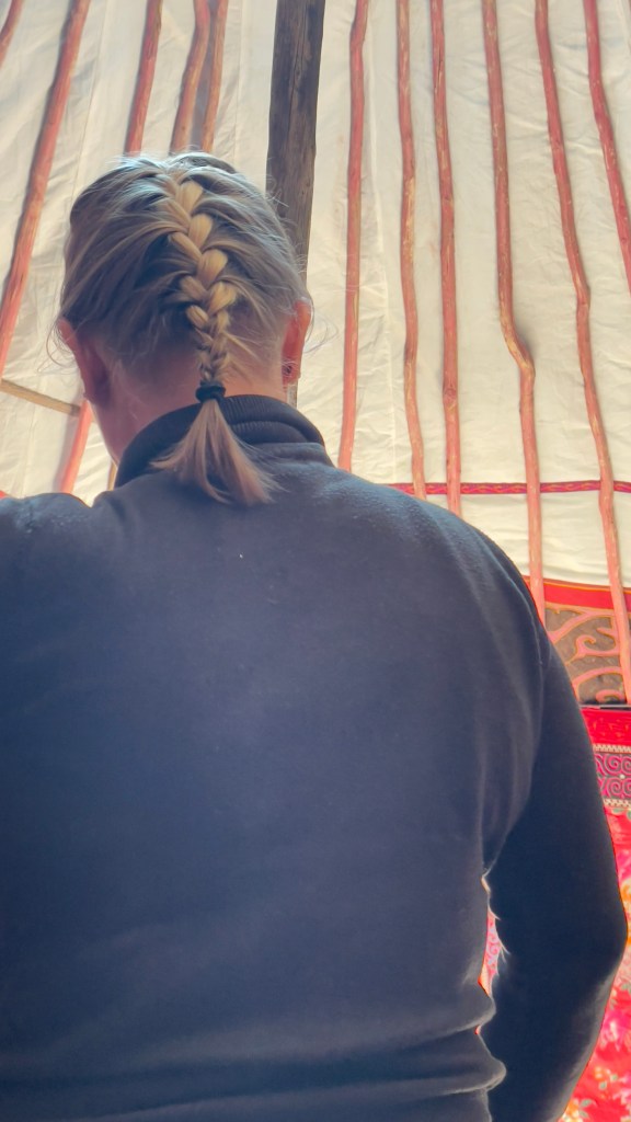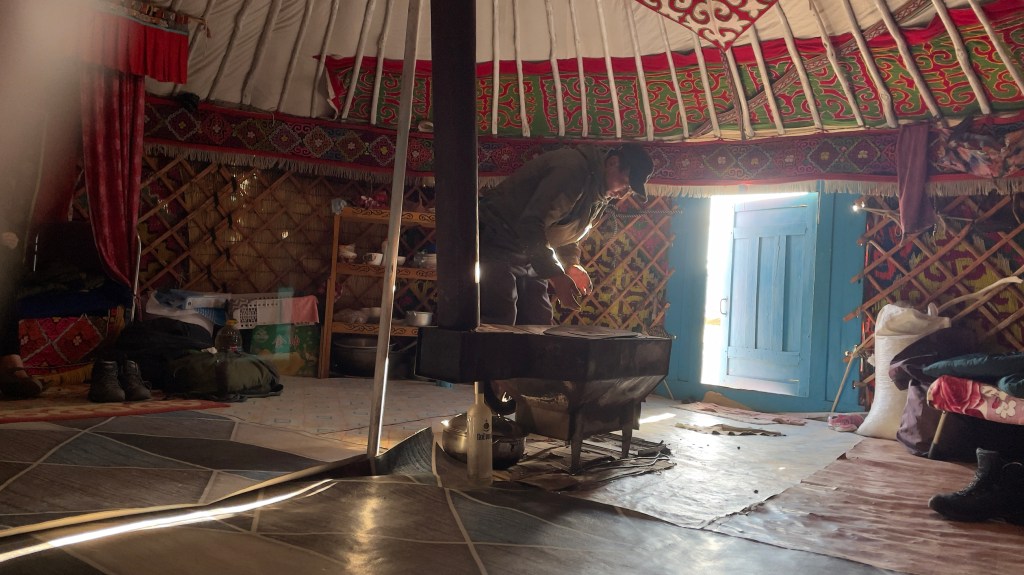 I expected to be cold in the Ger in the evening but it was the opposite – completely roasting, so much so I washed some clothes and lay them around the floor to dry – no point in wasting heat š„µ