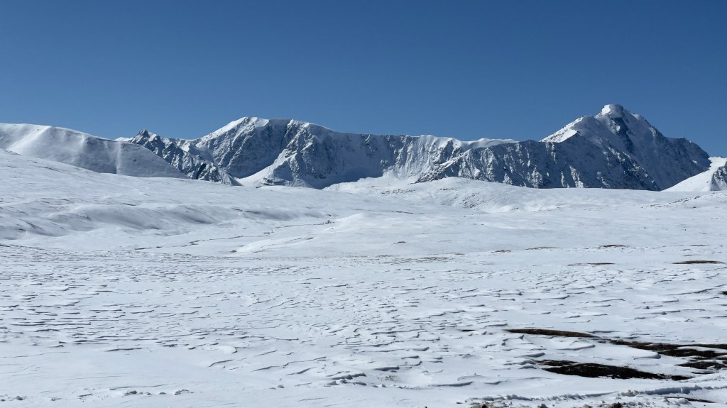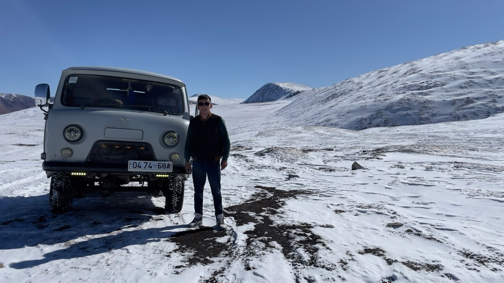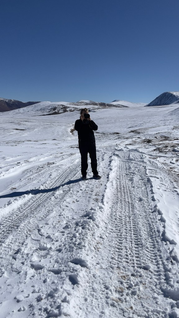 We travelled up to the summit as we approached Altai Bogd national park and boy was it cold. It was more the wind chill that made it unbearable to stay out of the van for any length of time so after a quick fun photo session, we were glad to climb back aboard to defrost.