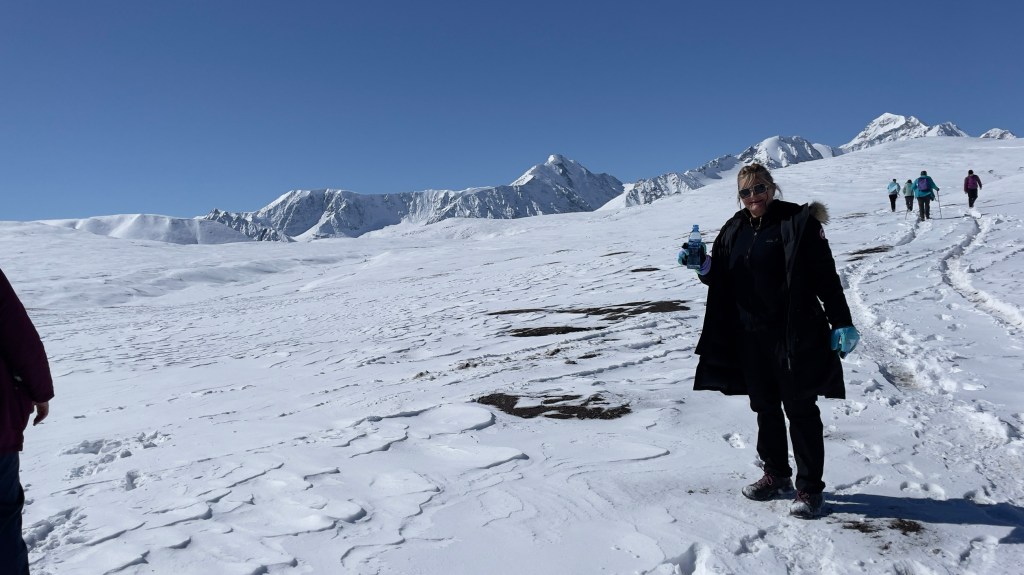 Today we were heading high up into the Altai National park mountains to see the glaciers. We were supposed to ride the horses to the top but they had all been taken out of the valley down to the lower slopes to protect them from the predicted harsh winter. The plan now was to take the minivans up as far as we could and walk to the summit – around 3,300 metres.