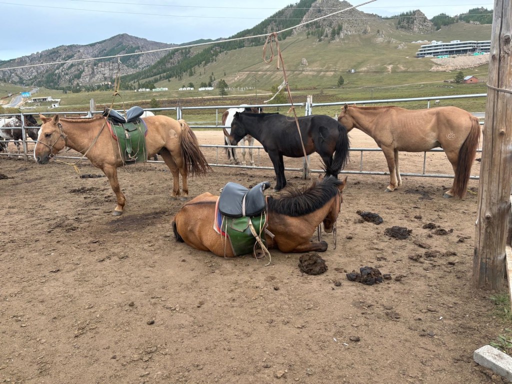 After lunch we were introduced to the horse riding & horse breeding family – we were going on a trek! Sturdy smallish Mongolian horses who had had their manes cut short and a branding singed onto their left thigh.
