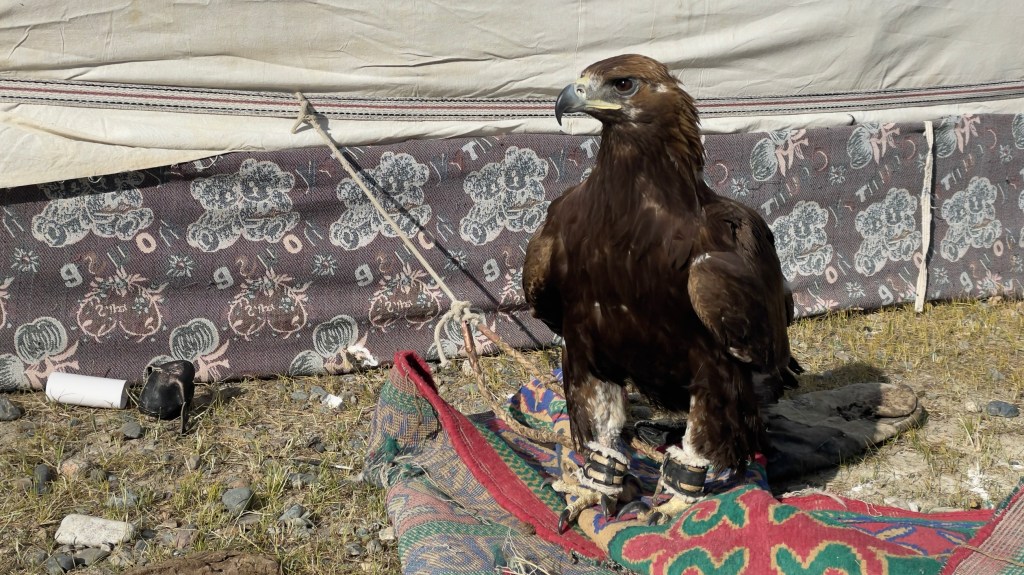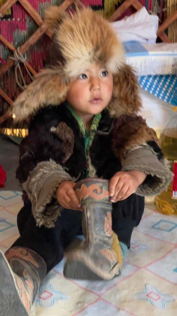 Returning to the Ger, where the children were dressing for the occasion and the eagles were patiently waiting, I headed in for a quick breakfast.